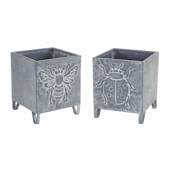 Welcome the spring season with this adorable set of Insect Planters Featuring two assorted sizes. the insect designs include bumble bee and lady bug The traditional white and grey tones paired with the weathered finish is the perfect combination to create a timeless spring display The quality iron metal composition is sure to last for seasons to come Complete the look by adding a potted plan or floral arrangement to each pot