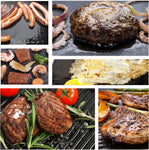 Reversible Design: One baking pan, both sides can be cooked, the ribbed side is used for grilled foods, such as steaks, lamb chops, fish and chicken; the flat side is used for pan cakes, toast bread, hamburgers, tortillas, fajitas, eggs, bacon, hot dogs, luncheon meat, minced meat, scallops, shrimps, veggies. Versatile and multipurpose grill pan perfect for indoor or outdoor BBQ, you can prepare food for family and friends wherever you go, enjoy different styles of delicious and frying fun