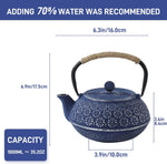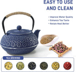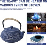 Cherry Blossom Pattern Cast Iron LidThe lid is beautifully decorated with cherry blossom pattern. | Moveable Stainless Steel InfuserAdd loose tea to stainless-steel infuser.The stainless-steel infuser helps separate tea leaves from the water, which can be removed and cleaned easily. | Enameled InteriorThe fully enameled interior helps preserve the taste of the tea original and pure also can allow for easy care. Rest assured that it's safe and healthy to be with no chemical additives or lead. | Classic Cherry Blossom Pattern DesignCherry blossom is the classic pattern of japanese style iron tea kettle. |