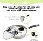 2 Cup Egg Poacher with Silicone Handle Boasting a sturdy, durable stainless steel body that is suitable for all stove types, including induction, this egg poacher pan is equipped with an innovative Bakelite handle that stays cool to the touch to keep hands protected from high heat.