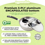 Premium 3-PLY aluminum ENCAPSULATED bottom eliminates hot spots and provides fast, even heat distribution to ensure your eggs are always cooked evenly, so you never have to worry about over- or under-cooking your eggs.