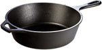 The Lodge Cast Iron Skillet is a multi-functional cookware that works wonders with slow-cooking recipes. This is a skillet with a deep sense of culinary art. Great for recipes requiring a little more room. Ensure a crispy texture to deep-fried foods, sear meats, simmer soups or cook casseroles without splatters. This deep skillet adds authentic country style flavor and golden browning to breads, rolls and desserts. Made of cast iron, this Skillet evenly distributes heat from the bottom through the sidewalls. Also, it retains heat better so your delicious meal remains warm for a long time. Sporting a stylish black color, the cast iron Skillet looks good in most kitchens and it doubles up as an excellent source of nutritional iron. A simple Cast-Iron skillet, like the one your grandmother used, still ranks as one of the best cooking utensils ever made. It gives you a nearly non-stick surface, without the possible harmful fumes generated by preheating chemically treated nonstick cookware.
