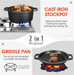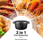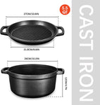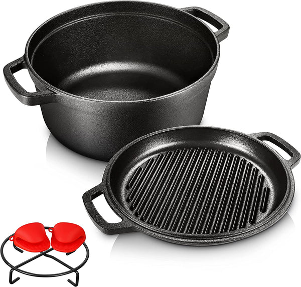 2-In-1 Cast Iron Dutch Oven -- The cookware kit Includes 5.5qt dutch oven, a cover as a skillet with ribbed bottom design, one set of oven mitts and a silicone...