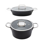 Compatibility: Both the stock pot and egg pan are suitable for most types of stove, including gas, electric, glass, and ceramic (not compatible with induction). Oven safe up to 250 degrees (glass lid should not go in the oven). Dishwasher safe.