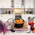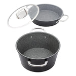 Serenk Stock Pot: This non stick stock pot is made from a very long-lasting PFOA-free granite coating. This pasta pot is 8.66 in/22 cm and has a capacity of 85 oz/2.5 l so it has a very useful size to use as, pasta pot, sauce pot and soup pot. Ideal for christmas dinner for a crowd, boiling water for pasta, shrimp, potatoes at once.