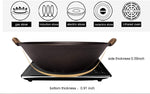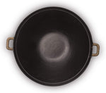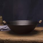 Handmade cast iron wok using Chinese traditional old casting technique. 1600 temperature liquid iron in earth mould to forge a wok. Thin but durable. Simple: No coating, no painting, nothing...
