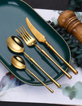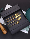 24-Piece Gold Cutlery Set,Stainless Steel Flatware Set for 6,Dinnerware Set for Restaurant,Tableware Set for Home and Hotel, Dishwasher Safety (Gold,24Pcs,B)
