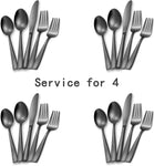 • Service for 4 —— This colorful silverware set includes 4 Dinner forks, 4 Table spoons, 4 Knives, 4 Salad forks and 4 Dessert spoons, woderful utensils for home use, hotel, restaurant, entertaining, party and more.
