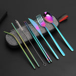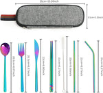 • ★ Convenient tableware 8-piece set: This is a full-size tableware, we also provide a portable size to fully meet your needs. Table knife, table fork, dinner spoon, chopsticks, straw cleaning brush, straight straw, curved straw, portable storage bag. Suitable for travel, camping, school or workplace.