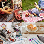 • ★ Premium cutlery set for camping: Forget all cheap plastic or fragile cutlery! Just trust our durable and high-quality stainless steel travel kits. In order to give you the best feel, we have thickened the material on the portable tableware set used for exquisite crafting. An 8-piece travel silverware set with a suitcase.