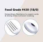 Safe MaterialMirror finishing polish surface treatment that bring the true shine out of the premium stainless steel of 18/0 or food grade of #430 and free of any hazardous materials. | Cleaning TipSimply clean with warm water and air dry. Dishwasher safe, extremely durable. *Kind reminder: not leave your flatware sitting in water, as soaking can permanently damage the metal. | Best Gift IdeaANNOVA flatware collections are safely introducing to babies/toddlers and great gift for birthday or baby shower. |
