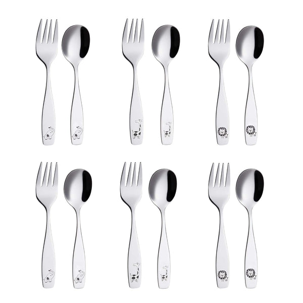 - ANNOVA Stainless Steel 12 PCS Children Flatware / Cutlery Set. We invited land animals to represent this tableware set, include Lion the king of safari, Elephant the smart one with super memory power, Giraffe the tallest.