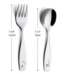 - CHILD-FRIENDLY: With ANNOVA’s ergonomic design, these cutleries have comfortable handles fit perfectly in little fingers, they are easy for children to hold. The forks are made with just the right amount of sharpness for children to pick food up effectively; spoons are spill-proof and grip food easily. With this set, kids learn how to self-feeding and table manners quicker and effortless. Recommended for 24 months +