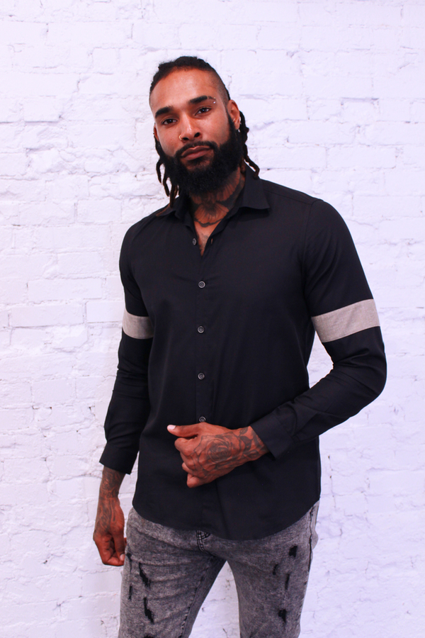 Our long-sleeve button up featuring armbands of a contrasting color and fabric Designed with total comfort and ease in mind to transition throughout the day Wear Propel to the office (at home). or for a night out Easily adabtable to the occasion you need it for