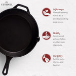 • TRUE COOKING VERSATILITY – The Cuisinel cast iron skillet pan can be used for frying, baking, grilling, broiling, braising, and sautéing meats, vegetables and more!