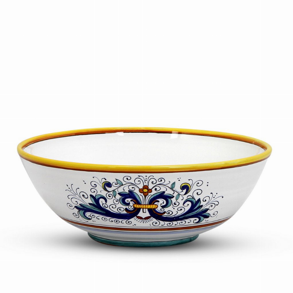 The Ricco Deruta design is undoubtedly the most popular and recognizable design in Deruta Italy and the Ricco Deruta Lite was fashioned thanks to an exclusive design in collaboration with Artistica and the renowned Deruta's FIMA factory that ensures the best quality of hand painted traditional Deruta's ceramics since 1960