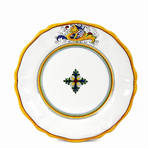 Dinnerware items of Raffaellesco design are customary very richly decorated; actually. it is true of the popular thought that the more items are decorated the more they are equally better and valuable. however. with the minimal current trend. our mission is to create a much simpler look at a reduced price while still maintaining the original Deruta feeling