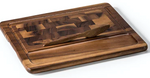 A perfectly sized and beautifully designed cheeseboard featuring gorgeous end grain wood and an acacia wood knife The knife fits conveniently in grooves between the two sections Delight your guests by serving cheese. crackers. hor d'oeuvres. or any appetizer on this elegant cheeseboard Handcrafted from solid acacia wood. a high-quality hardwood great for culinary applications