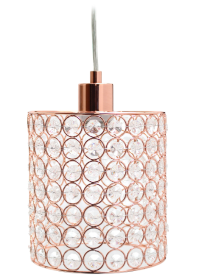 Invigorate your home d?cor with this beautiful one (1) light crystal cylinder pendant! It features a trendy Rose Gold (copper) finish and a crystal tiled shade. which hangs 5 feet...