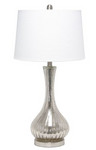 Standing at 29 inches tall. this lamp is sure to make a statement in any room The mercury glass color of the base and soft curvy lines give this lamp its' lavish look Perfect for large foyers. bedrooms. living rooms or offices!