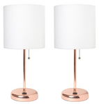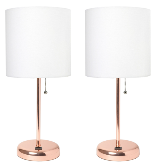 This fun and fashionable lamp features a rose gold base and a fabric shade It comes equipped with a USB seated in the base for use to charge mobile phones. handheld games. tablets. and other small electronics This lamp will add a fabulous flair to any room Perfect for bedrooms. kids and teens. college dorms. nurseries. or fun offices!