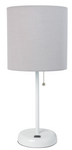 This fun and fashionable lamp features a white base and a fabric shade It comes equipped with a USB seated in the base for use to charge mobile phones. handheld games. tablets. and other small electronics This lamp will add a fabulous flair to any room Perfect for bedrooms. kids and teens. college dorms. nurseries. or fun offices!