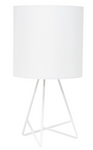 Bring function and fashion to any tabletop in your home with this modern table lamp The white metal base showcases an open silhouette complimented by a white fabric drum shade Perfect size for any room in your home ! Illuminate your living room. bedroom. kids and teen rooms. college dorm. apartment. nursery. or offices with this modern table lamp with contemporary flair!