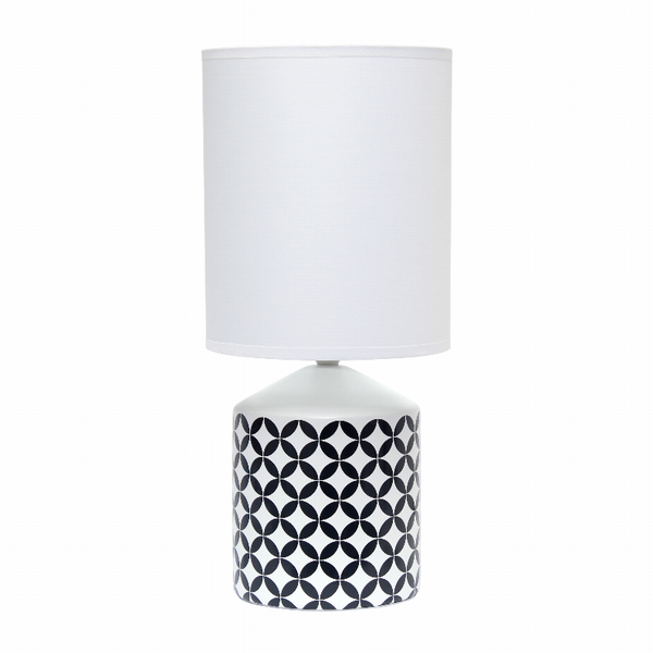 Spruce up the lighting in your home with this fashionably designed table lamp! A beautiful repeat pattern printed on the base is paired effortlessly with a clean white fabric shade...