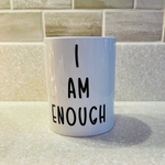 I AM ENOUGH. COFFEE Mug Holds approx 15 ounces of your favorite liquid Mug is designed to have a handcrafted look Measures 45 high Comes with Gift Box Material-Ceramic Color-White...