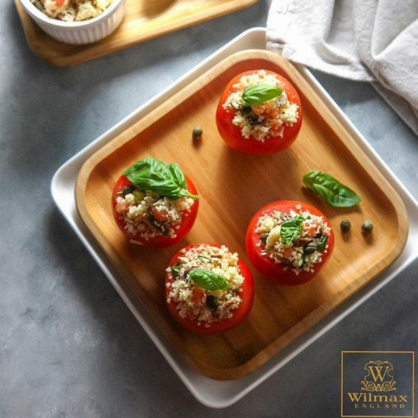 WILMAX bamboo plates is all about quality. style and atmosphere They are perfectly sized for serving sides and appetizers. Made of lovely. durable. organic bamboo wood. eco-friendly. beautiful texture. well balanced. heatproof. waterproof Our bamboo tableware can be used in many ways. in the restau-rant. for catering business. home or hotels You and your guests will love modern. stylish. and elegant WILMAX bamboo line Wilmax bamboo is made of 100% renewable resources and grows in unpolluted mountains of the Asian countryside Because Bamboo is naturally anti-bacterial and pest resistant it doesn't need any chemical treatment before producing food safe serveware nor does it require a heavy varnish or lacquerPlate. 8 x 8 (20-1/2 cm x 20-1/2 cm). square. natural bamboo