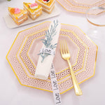 - ANY OCCASION:The combination of pink and gold is exciting. Pink and gold disposable plates are perfect for weddings, parties, friends' gatherings, birthday parties, etc.