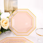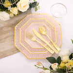 - UNIQUE DESIGN: Plastic pink plates has a an octagonal perforated edge design, like flowers inlaid around the plate.The detachable pink handle makes the cutlery more robust and can be reassembled for use.