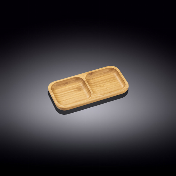 WILMAX bamboo serving trays is all about quality. style and atmosphere They are perfectly sized for serving sides and appetizers. Made of lovely. durable. organic bamboo wood. eco-friendly. beautiful texture. well balanced. heatproof. waterproof Our bamboo tableware can be used in many ways. in the restaurant. for catering business. home or hotels You and your guests will love modern. stylish. and elegant WILMAX bamboo line Wilmax bamboo is made of 100% renewable resources and grows in unpolluted mountains of the Asian countryside Because Bamboo is naturally anti-bacterial and pest resistant it doesn't need any chemical treatment before producing food-safe serveware nor does it require a heavy varnish or lacquer Tray. 8 5 X 4 5 (22 X 11 5). square. with (2) square wells. natural bamboo ARTICLE: WL-771223 / A. INNER 10. CTN 80