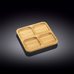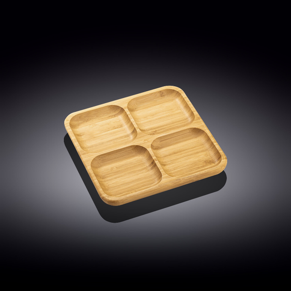 WILMAX bamboo serving trays is all about quality. style and atmosphere They are perfectly sized for serving sides and appetizers. Made of lovely. durable. organic bamboo wood. eco-friendly. beautiful texture. well balanced. heatproof. waterproof Our bamboo tableware can be used in many ways. in the restaurant. for catering business. home or hotels You and your guests will love modern. stylish. and elegant WILMAX bamboo line Wilmax bamboo is made of 100% renewable resources and grows in unpolluted mountains of the Asian countryside Because Bamboo is naturally anti-bacterial and pest resistant it doesn't need any chemical treatment before producing food-safe serveware nor does it require a heavy varnish or lacquer Tray. 8 5 x 8 5 (22 x 22 cm). square. with (4) square wells. natural bamboo ARTICLE: WL-771220/A. INNER 8. CTN 48