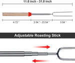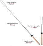 Extendable roasting forksThe marshmallow fork is scalable to a maximum length of 32 inchesKeep a safe distance from the fire and very suitable for children.The wooden handle provides a good grip experience | Distinguish colorsBright colors can bring a good mood,Different colors are easy to distinguish and more attractive to children,They no longer to argue about whose it is.Rounded tips to make them safer | Waterpoof bagsEquipped with waterproof packaging bag for convenient storage after using,For outdoor barbecue packaging is the perfect companion to avoid clutter after use |
