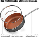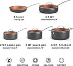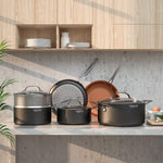 10-Piece Pots and Pans Nonstick Copper Coated Induction Pot and Pan of Frying Pan Sautepan Stockpot Saucepans with Lids and Food Steamer Black