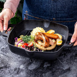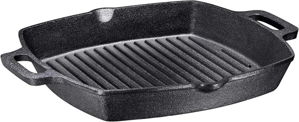 10" Square Cast Iron Grill Pan Steak Pan Pre Seasoned Grill Pan with Easy Grease Drain Spout, with Large Loop Handles for Grilling Bacon, Steak, and Meats
