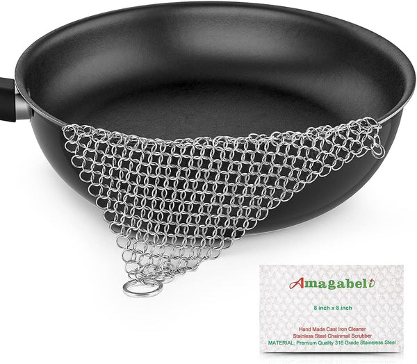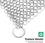Smooth & Durable: Premium 316 stainless steel cast iron cleaner in dimension of 10x10 inch with classic smooth chainmail rings and manually closed rings interface allows gentle safe treatment of...
