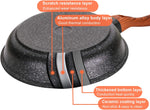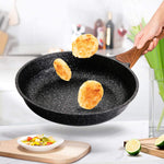 11" Nonstick Frying Pan, Dishwasher Safe Skillet for Cooking, Professional Nonstick Fry Pan with Wooden Handle, Stone Frying Pan 100% PFOA Free