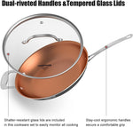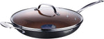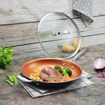 12 Inch Non-Stick Frying Pan with Lid-Copper Cooking Fry Pan Compatible with Induction Hobs-Oven Suitable and Dishwasher Suitable Black