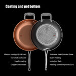 The 12 inch Copper skillet is made of non-stick material. The non stick is slick, so food wont stick while cooking. Perfect for cooking steaks, broiling fish, frying meat, bacon,...