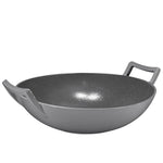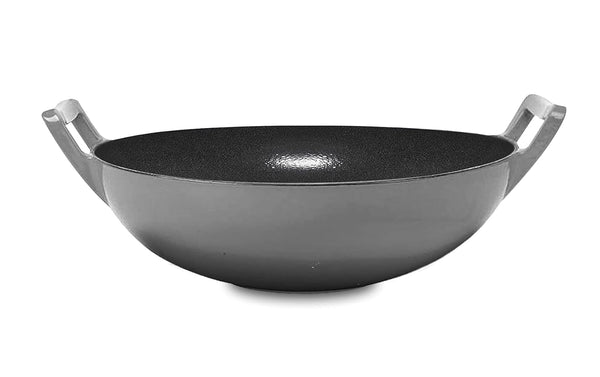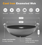 14 Inch Enameled Cast Iron Wok/Pot. 14" Nonstick Enamel Skillet Pan with Large Loop Handles & Flat Base. Cookingware for Kitchen/Indoor/Outdoor Camping. (Grey)