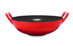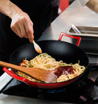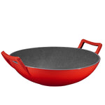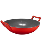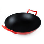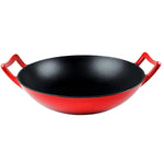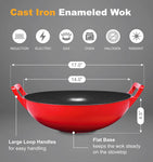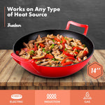14 Inch Enameled Cast Iron Wok/Pot. 14" Nonstick Enamel Skillet Pan with Large Loop Handles & Flat Base. Cookingware for Kitchen/Indoor/Outdoor Camping. (Red)