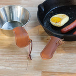 2Pcs Leather Hot Handle Holder Cast Iron Handle Handmade Pan Handle Covers Panhandle Potholder Pot Handle Cover for Cast Iron Skillet Brown