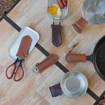 PREMIUM HANDMADE LEATHER HANDLE HOLDER: Our heat resistant premium leather pot holder will protect your arms and hands from hot pans, grills, griddles, and more. Never worry about burning your...