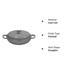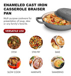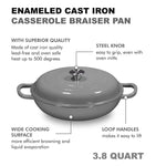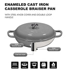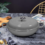 3.8 Quart Enamel Cast Iron Dutch Oven with Handles and Lid, 3.8 Qt Grey Cast Iron Skillet, Enamel Shallow Cookware Braising Pan for Casserole Dish, Crock Pot Covered with Cast Iron