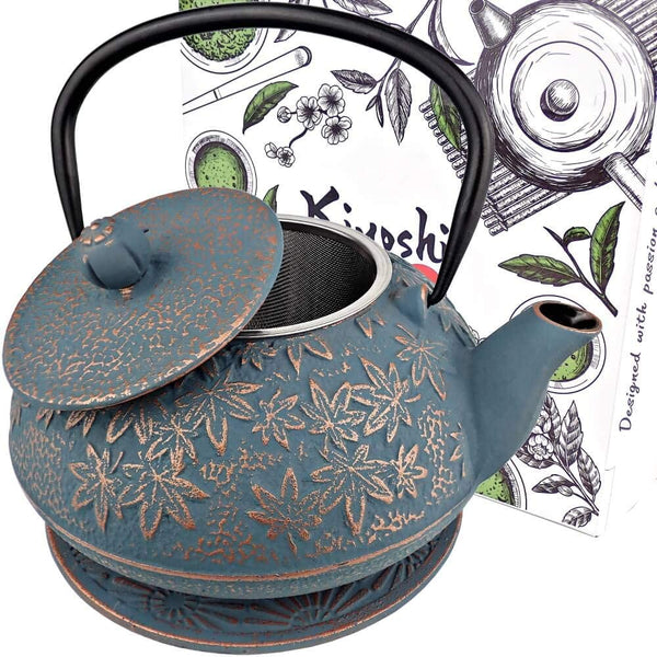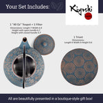 3 Piece Set Japanese Cast Iron Teapot Large Capacity 40Oz with Trivet and Loose Leaf Tea Infuser, Cast Iron Tea Kettle Stovetop Safe. Tetsubin Coated with Enamel Interior - Blue Teapot