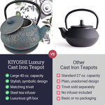 Brew More Tea in a Single Session: The strong Japanese tea kettle for stove top is the perfect blend of style and size; The cast iron kettle pot measures 7"...
