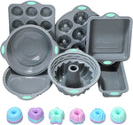 Food Grade Silicone - Bpa free, is more flexible. All in one set, these 7 pieces baking pans(Chiffon Cake Pan, Muffin Pan, Donut Pan, Bread Pan, Pizza Pan, Cake Pan,...