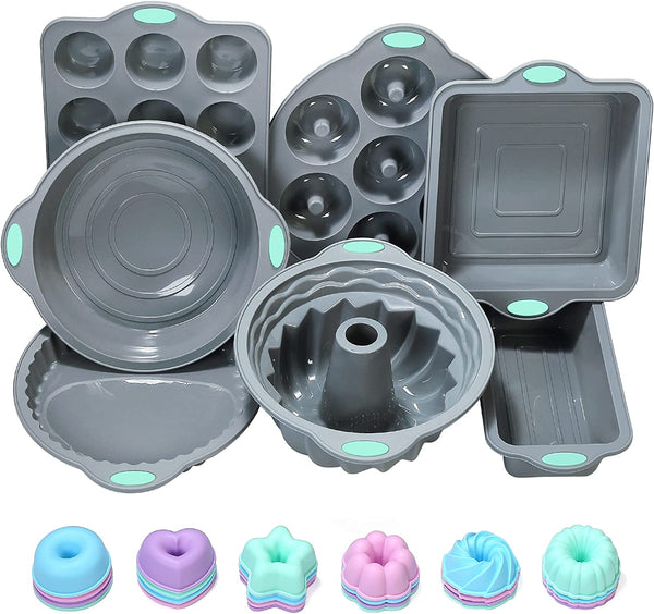 31 Pieces Silicone Baking Pans Set, Nonstick Bakeware Sets, BPA Free Silicone Molds, with Metal Reinforced Frame More Strength, Light Grey